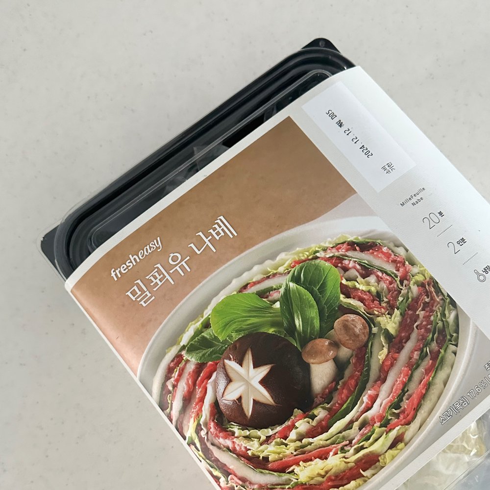 그래서 이번에는 간단하면서 적당한 재료의 양으로 홈파티 음식을 만들어 보려고 컬리에서 판매하는 밀키트 밀푀유나베를 구매해 봤어요!
