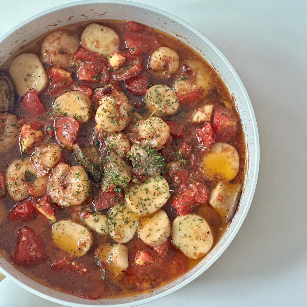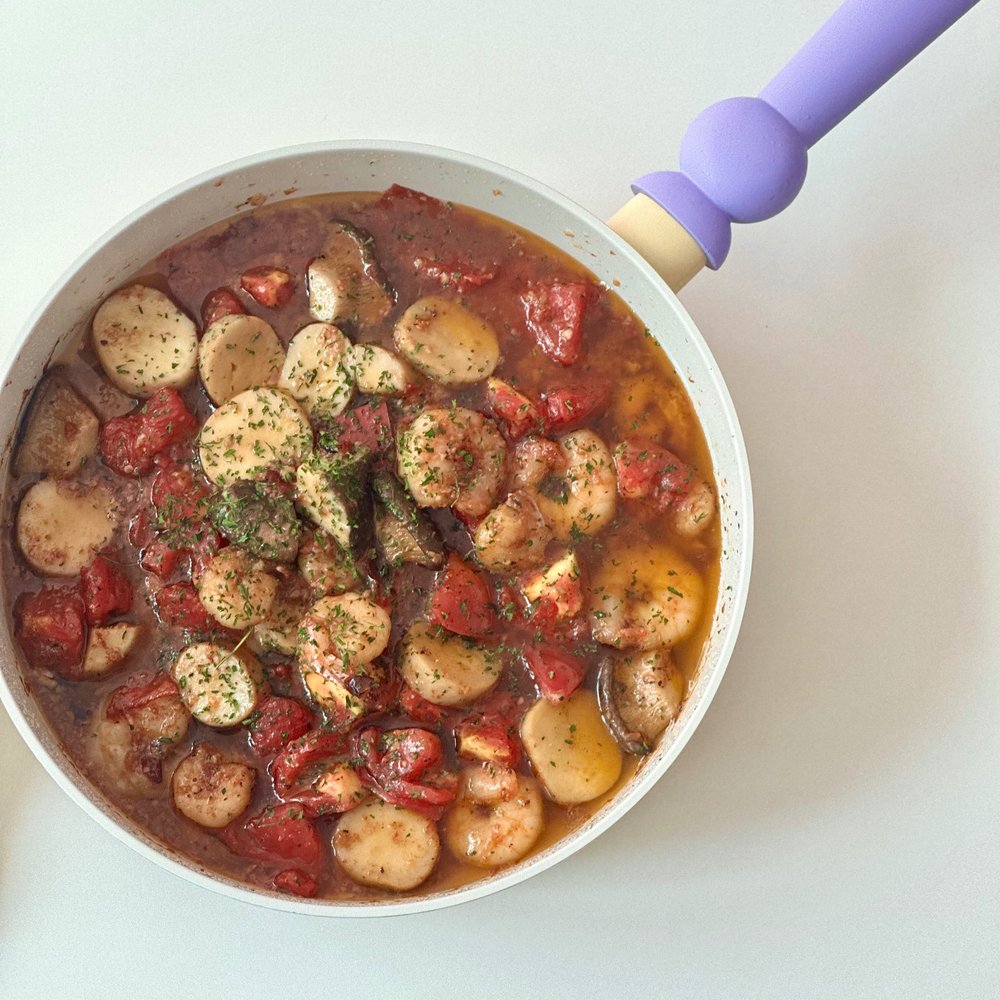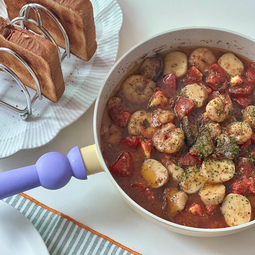 올리브오일과 마늘, 냉동새우에 간만 맞춰서 빵에 얹어 먹어도 너무 맛있잖아요...😋 거기에 방울토마토, 새송이버섯, 버터까지 넣어줘서 더욱 감칠맛 나는 감바스를 만들어 봤어요.