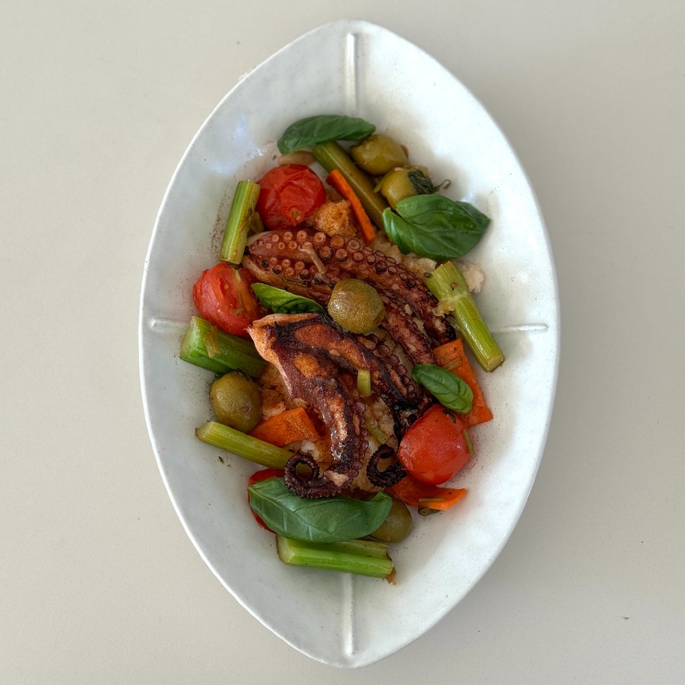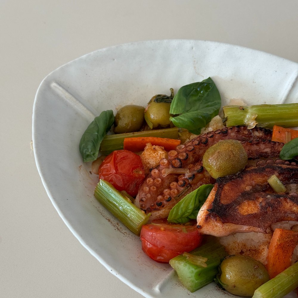 뽈뽀를 생각하면 알록달록한 채소에 문어 다리가 올라가 있잖아요. 그래서 먼저 준비한 건 컬리에 있는 신선한 채소들🥗 감자, 셀러리, 당근, 토마토 등 여러 채소를 사고 집에 있던 올리브와 새로 준비한 문어도 준비하고 각종 양념도 준비했어요.