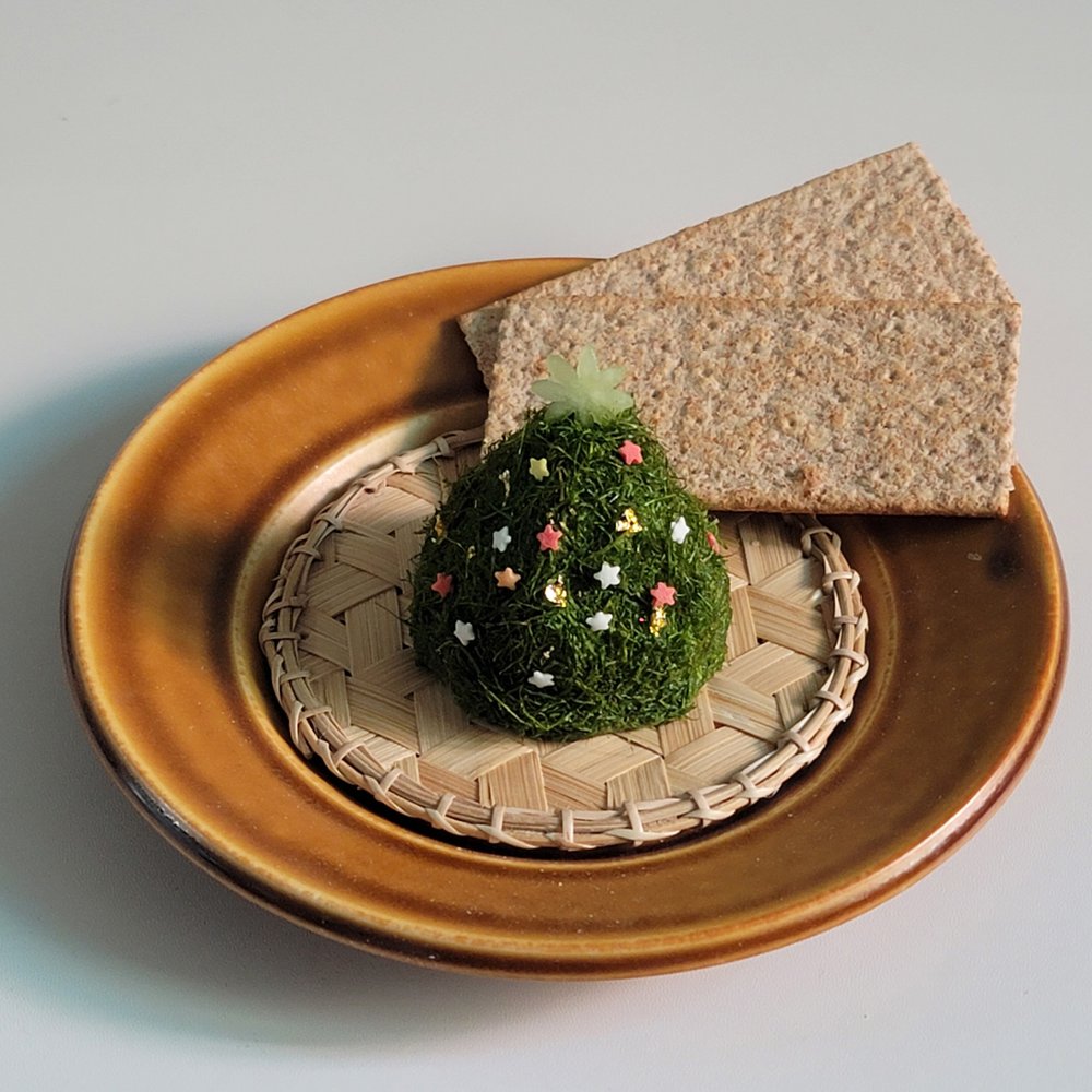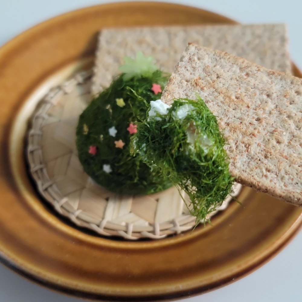 4. 크림치즈 2큰술 정도를 동그랗게 만든 후, 감태를 겉에 묻힌 후 트리 모양을 만들어주세요.